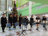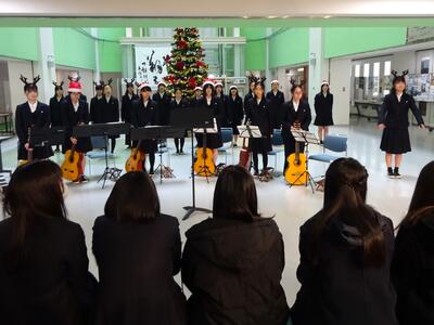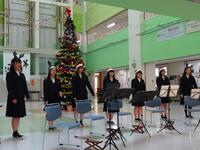 12月16日昼休みにエントランスホールにて、音楽部とギター部がクリスマスコンサートを開催しました。