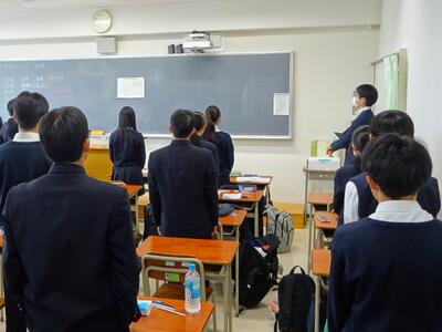 生徒は放送に合わせて校歌斉唱を行い、校長先生から年頭にあたってのメッセージが伝えられました。